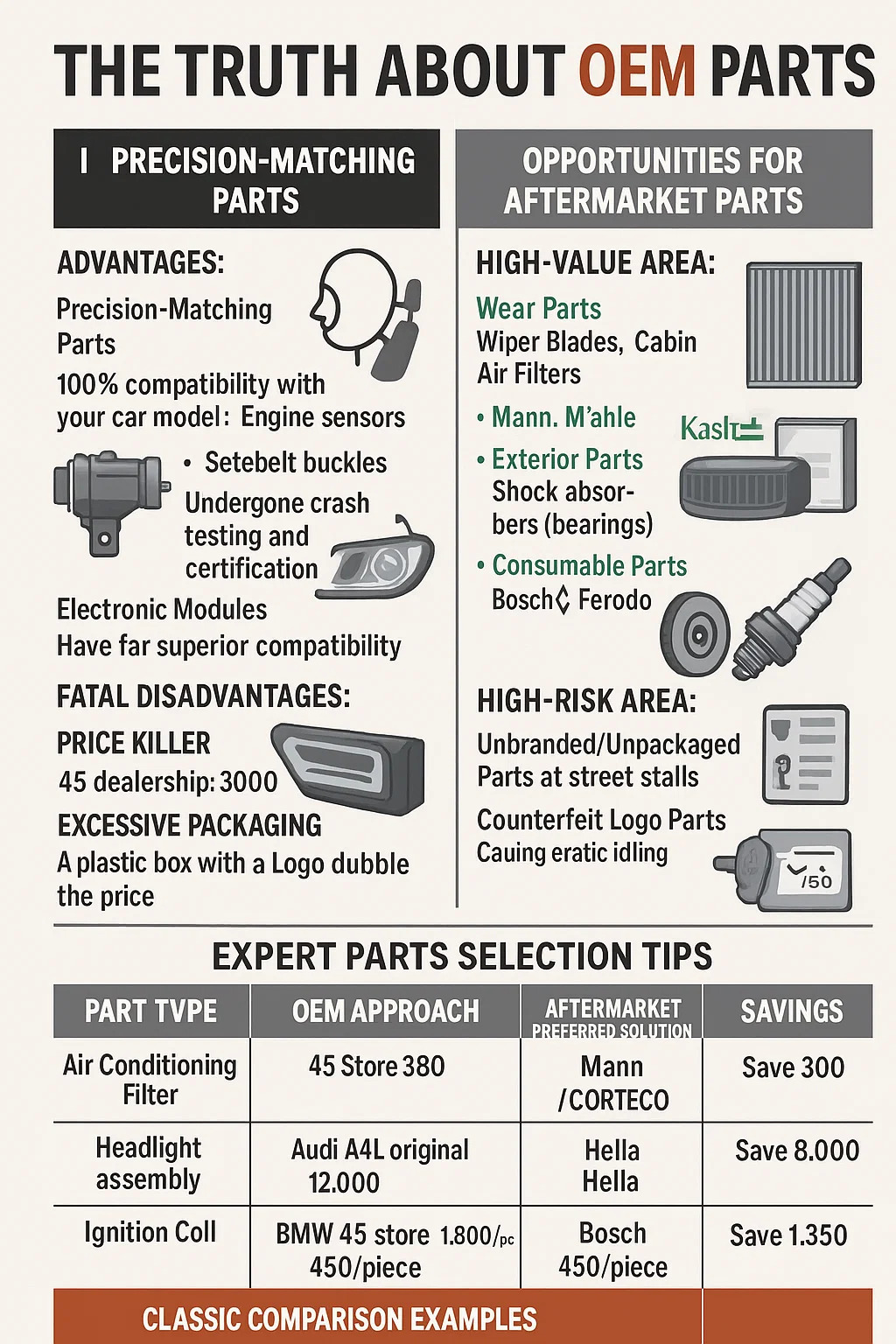 Soalan ini seperti bertanya, "Adakah kes telefon asal selalu lebih baik daripada pihak ketiga?"-tidak semestinya. The bahagian automotif Pasaran adalah kompleks dan pelbagai; Ia bergantung kepada jenis bahagian tertentu dan prestij jenama. Inilah logik untuk menilai: